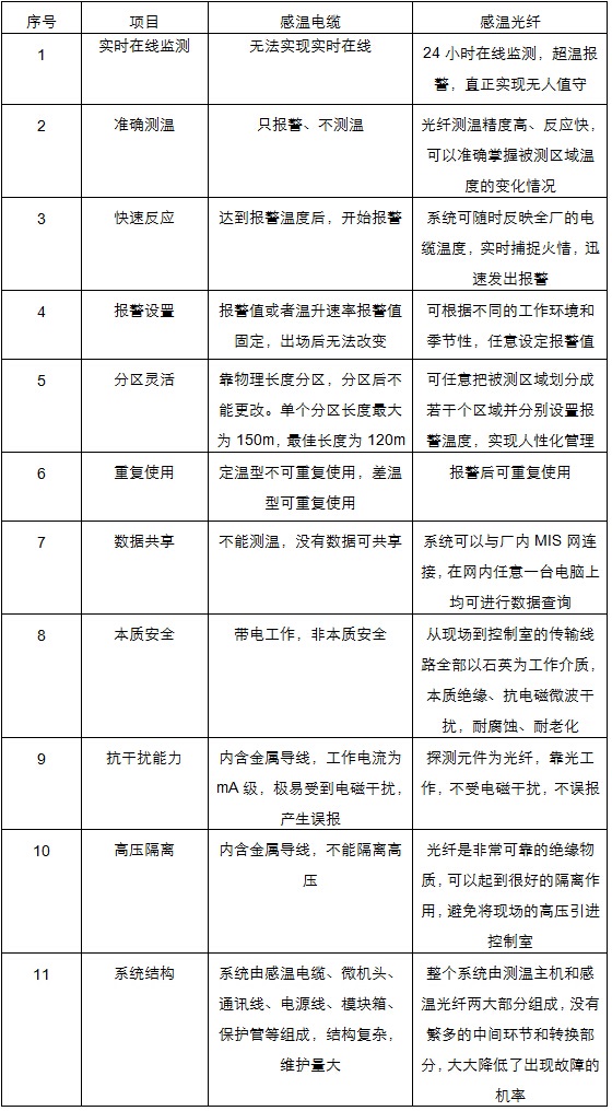 由于光纖具有電絕緣、本征安全、不受電磁干擾等特性,并且感溫光纖溫度監測系統施工安裝簡(jiǎn)單,調試容易,因此感溫光纖相比感溫電纜更具優(yōu)勢。