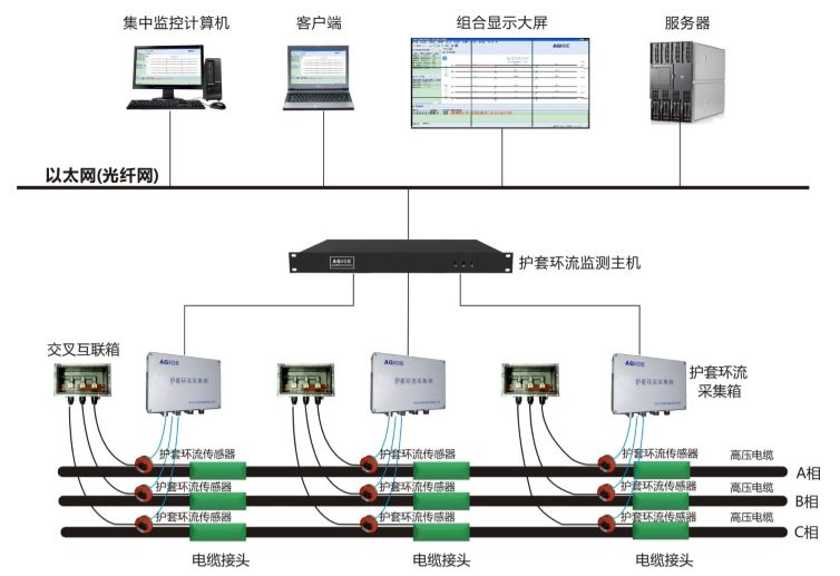高壓電纜的金屬護套是電纜的重要組成部分,當纜芯通過(guò)電流時(shí),會(huì )在金屬護套上產(chǎn)生環(huán)流,外護套的絕緣狀態(tài)差、接地不良、金屬護套接地方式不正確等等都會(huì )引起護套環(huán)流異常,嚴重時(shí)會(huì )威脅電纜運行安全。當電纜金屬護套環(huán)流出現異常時(shí)會(huì )造成電纜絕緣局部高溫損耗發(fā)熱,加速絕緣老化,降低電纜使用壽命,嚴重時(shí)會(huì )導致電纜發(fā)生直接擊穿接地故障。護套環(huán)流異常也會(huì )直接影響電纜線(xiàn)路的載流量,產(chǎn)生較大的電能損耗,浪費電能、減少經(jīng)濟效益。