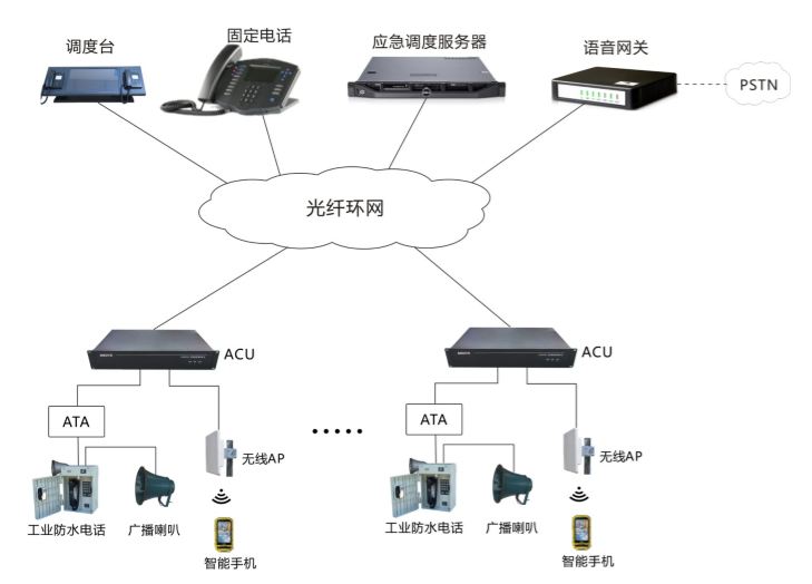 應急通信系統主要由應急調度臺、區域控制單元、電話(huà)終端、語(yǔ)音網(wǎng)關(guān)等組成。系統通過(guò)以太網(wǎng)絡(luò )實(shí)現現場(chǎng)各電話(huà)終端之間、電話(huà)終端與控制中心的相互呼叫以及應急調度、應急廣播,通過(guò)無(wú)線(xiàn)信號覆蓋和WIFI手機實(shí)現無(wú)線(xiàn)語(yǔ)音通話(huà)及人員定位,通過(guò)語(yǔ)音網(wǎng)關(guān)實(shí)現與公網(wǎng)之間的通信,提高了處置突發(fā)事件的能力。