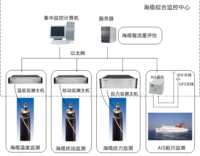 光格海纜綜合在線(xiàn)監測系統,針對海纜運行過(guò)程存在的溫度過(guò)熱、船錨拖拽等異常因素,利用海纜內置光纖作為傳感介質(zhì),全天候實(shí)時(shí)監測溫度、擾動(dòng)、埋深、沖刷、路由,同時(shí)結合船舶預警監控系統和故障定位系統,及時(shí)發(fā)現海纜異常狀況,分析海纜運行狀態(tài)。對影響海纜安全的事件發(fā)出故障預警、分析故障狀態(tài)、定位故障位置。