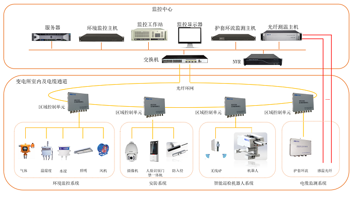 光格鐵路、地鐵變電所綜合監控系統主要由環(huán)境監控系統、視頻監控系統、門(mén)禁系統、防入侵系統、分布式光纖測溫系統、護套環(huán)流監測系統和智能巡檢機器人系統組成。針對鐵路、地鐵變電所內設備和環(huán)境進(jìn)行實(shí)時(shí)在線(xiàn)監測,系統具備智能聯(lián)動(dòng)功能,實(shí)現風(fēng)機、水泵、機器人等智能聯(lián)控,及時(shí)消除隱患,保障變電所資產(chǎn)和運維人員安全?;谳o助決策分析、機器人復核,可有效提升運維質(zhì)量和效率。